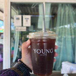It's a minimalistic café featuring a white and brown wood-patterned aesthetic, with a beautiful photo spot that includes a white floor and a real wooden door. Visitors should not miss this corner! The café offers a selection of beverages along with a variety of delicious cakes to choose from.