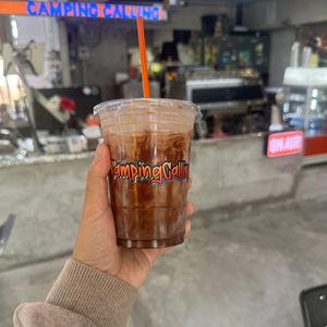 别致的咖啡馆,仿佛置身于露营的氛围中,装饰得非常悠闲。菜单上有饮品、咖啡、甜点、冰淇淋和小吃,外面区域有明亮的橙色椅子,非常适合拍照。室内则是简单而时尚的裸露水泥风格,有很多拍照角落。 我点的菜单: 🥤 冰可可,少糖,65泰铢,味道不是很浓,稍显淡,但是还不错。